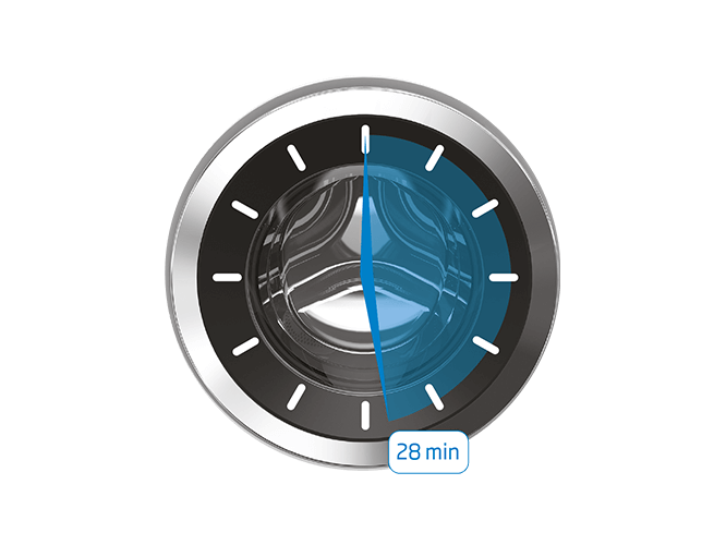 Full capacity cleaning in 28 min